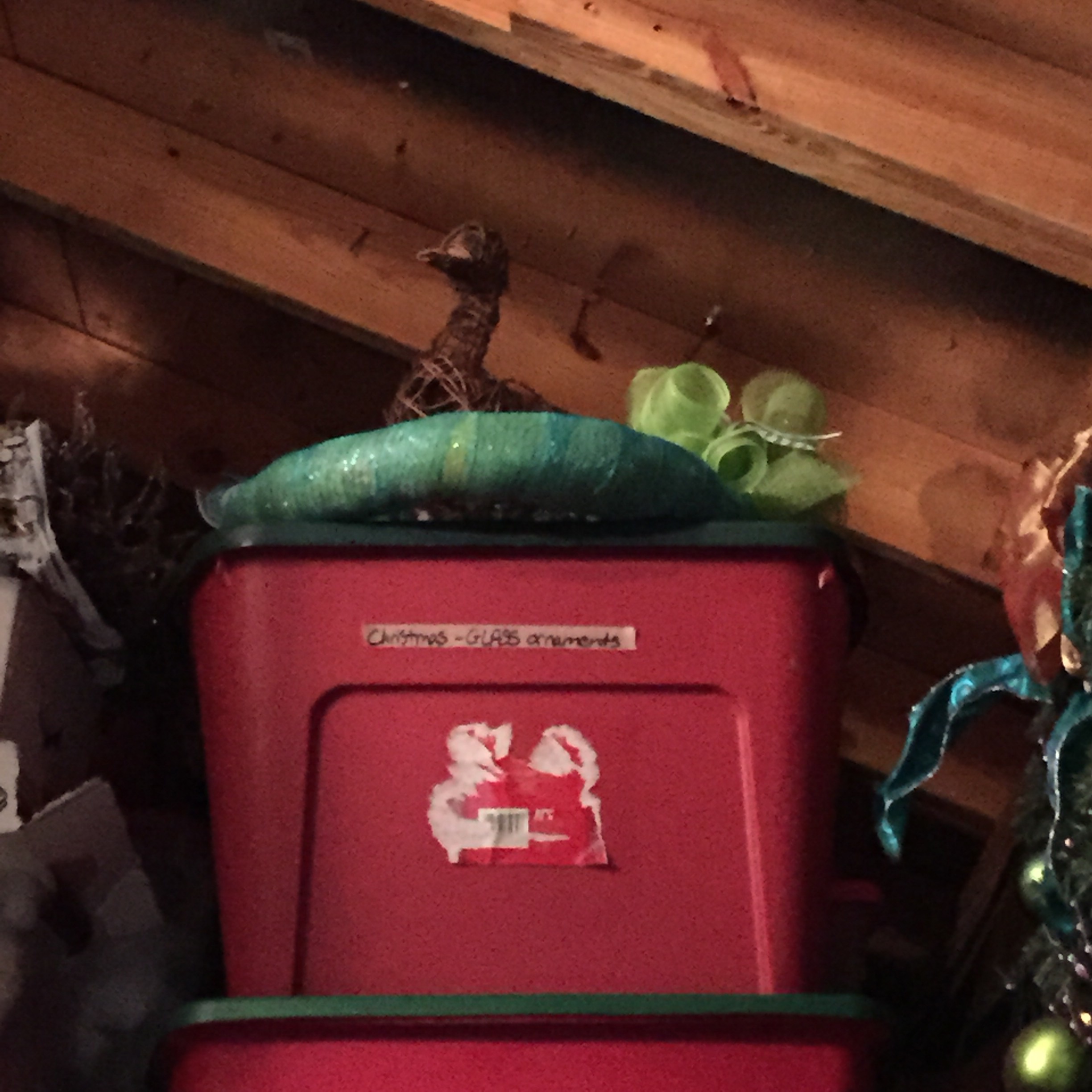 Can you imagine what I thought at first glance of this in a dark attic? Ha! I about fell down the ladder thinking a duck had taken up residence in my back to school spirit wreath!