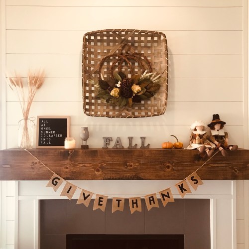 I transformed our Halloween mantel to a Thanksgiving mantel with just a few small changes.